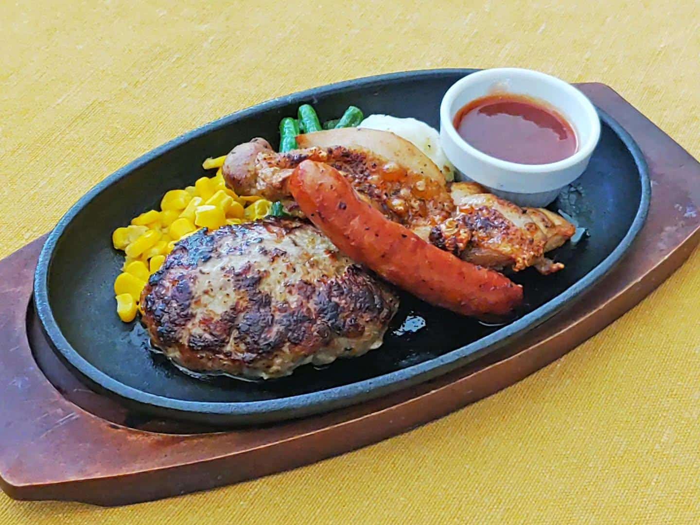 ◆ミックスグリル ハンバーグ&ケイジャンチキン&粗挽きソーセージ