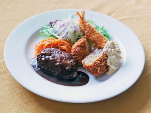 ◆ハンバーグ&メンチカツ エビフライ添え ~デミグラスソース~