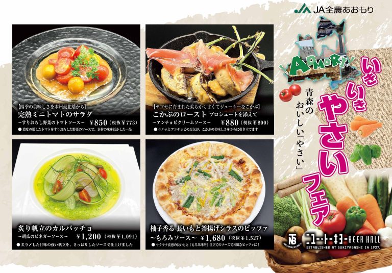 7月28日(月)スタート‼期間限定メニュ―【いきいきやさいフェア】青森の生産者の愛情で育てられた新鮮で美味しいやさいを活かした自慢の料理をニユートーキヨーがお届けいたします♪