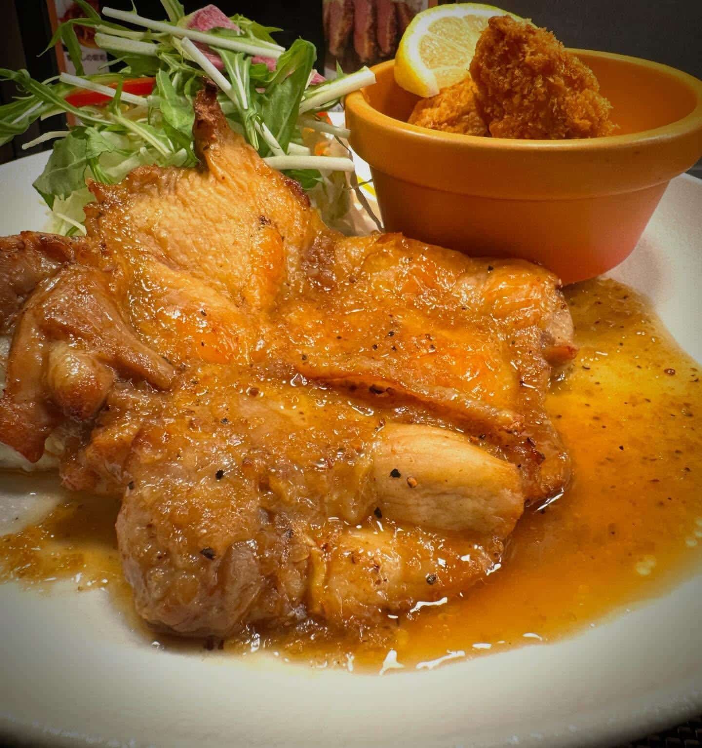 ボリューム満点のチキンソテーと