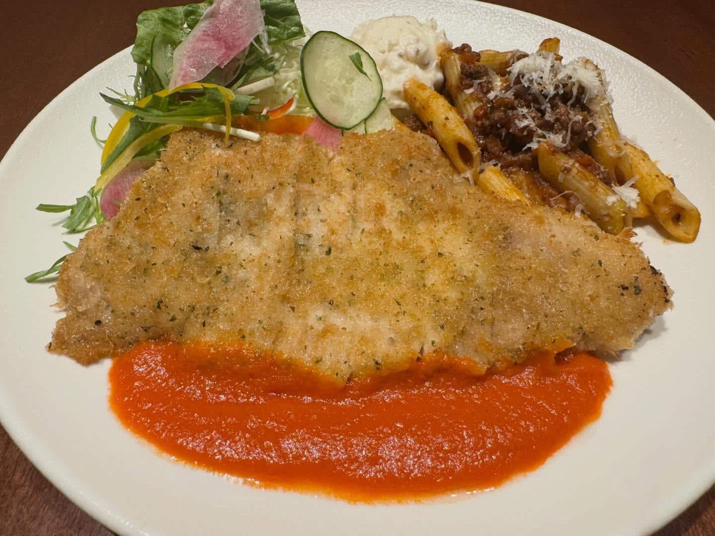 豚カツレツ ~トマトソース~ &ペンネの和牛ボロネーゼソース☺️