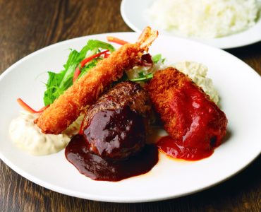 こだわりのデミグラスハンバーグと海老フライ&カニクリームコロッケ