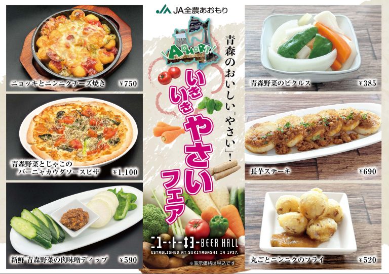 7月28日(月)スタート‼期間限定メニュ―【いきいきやさいフェア】青森の生産者の愛情で育てられた新鮮で美味しいやさいを活かした自慢の料理をニユートーキヨーがお届けいたします♪