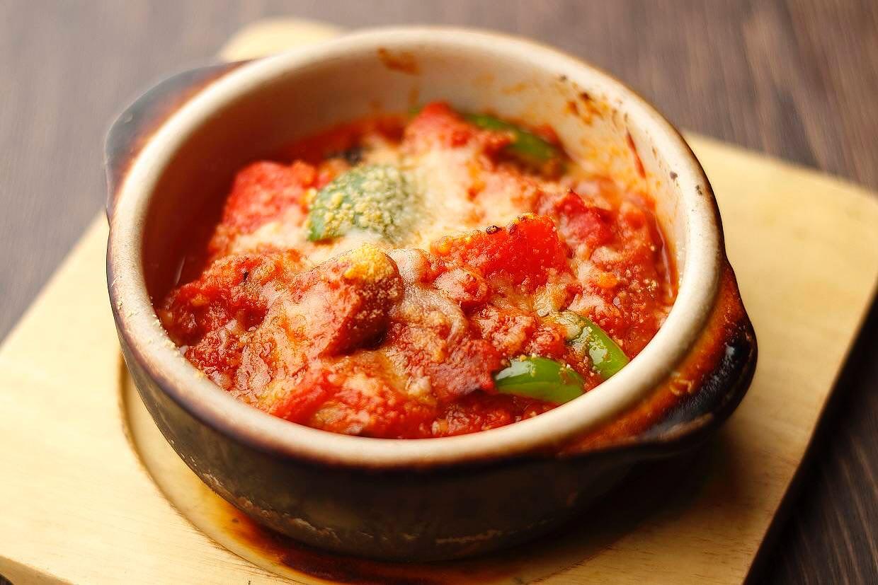 ごろっとした野菜とピリ辛なチョリソーを旨みたっぷりなトマトソースで煮込みました♪
