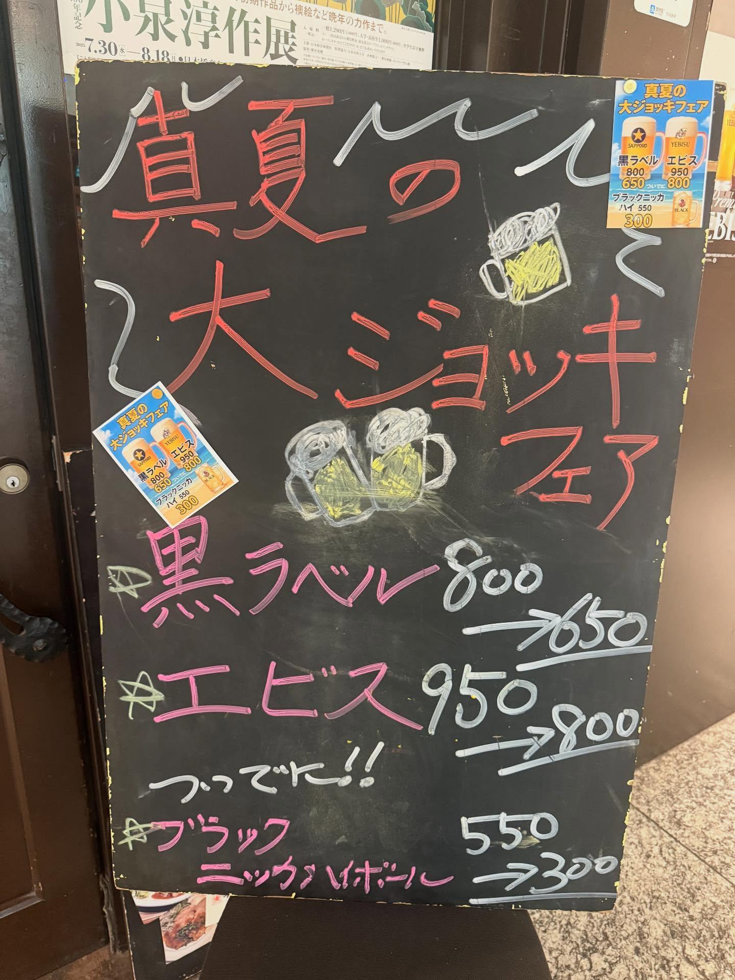 黒ラベルとエビスビールの大ジョッキが夏だけの特別価格です🍺