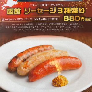 塩ソーセージ 昆布ソーセージ ジンギスカンソーセージ の三種盛合せです