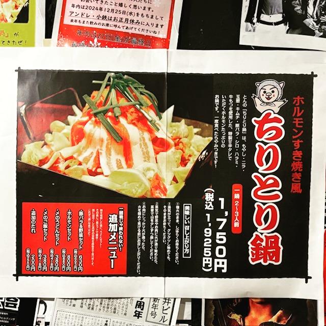 とん の鍋といえば ちりとり鍋です👍 ホルモンすき焼き風なイメージです ちりとりのような形の鍋でするから とか じっくりと煮込んでホルモンに 火を通していただく鍋です