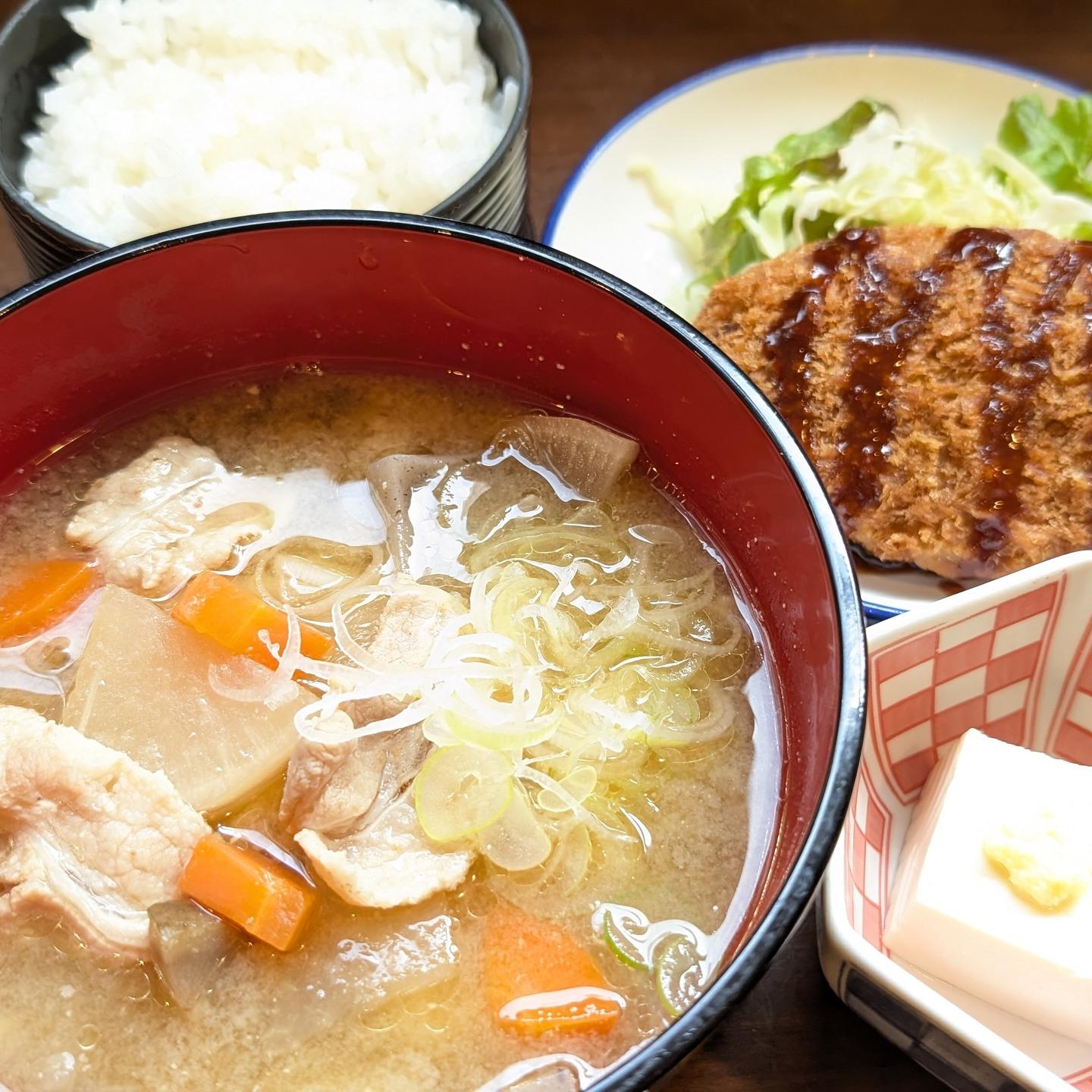 16日からの 週替わり定食は ⭐とん汁定食💕 寒い時には食べたいですね 具だくさんのとん汁とぜひ メンチカツも付いてます