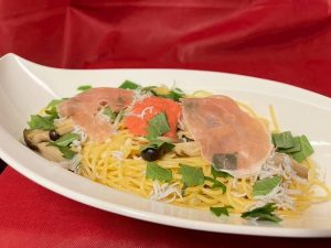 『釜揚げしらすと明太子・生ハムのペペロンチーノ』