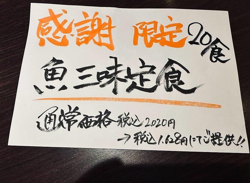 お客様へ日頃の感謝を込めまして昼のみ数量限定で人気の三味定食を感謝価格にて販売致します✨✨