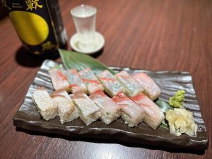 ネタには徳島県鳴門より直送の新鮮刺身を贅沢に使用して押し寿司にしました😊