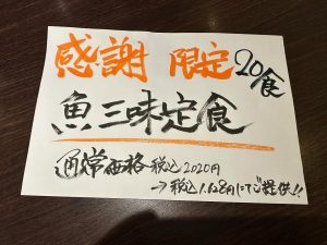 お客様へ日頃の感謝を込めまして昼のみ数量限定で人気の三味定食を感謝価格にて販売致します!