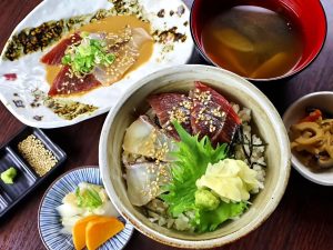 おはよう座います! 本日は漬け丼の紹介です。 お昼の漬けは自分好みにカスタマイズ。 本日はマグロ・すだちぶり又ははマグロ・平鯛のどちらかを選べ、漬 けダレも土佐醤油ダレ又は胡麻ダレが選べます♪ 是非自分好みの漬け丼をお召し上がりください。 本日も来店心よりお待ち致しております!