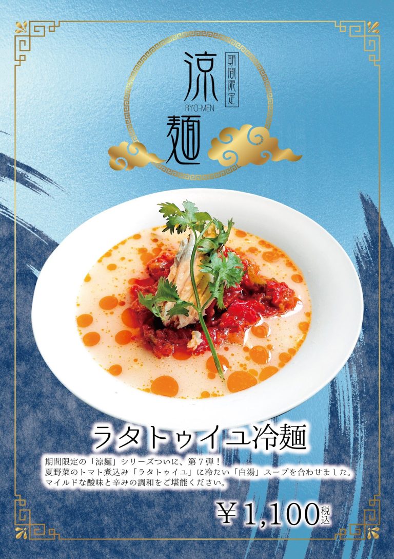 「ラタトゥイユ冷麺」 白湯ベースの冷やし麺に夏野菜のトマト煮込みをトッピングマイルドな酸味と 辛味をご堪能下さい♪ <住所> 東京都千代田区大手町1−7−2 東京サンケイビル地下1階 <営業時間> 11:00〜15:00(LO 14:30) 17:00〜22:00(LO 21:30) <定休日> 土日祝日