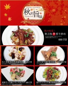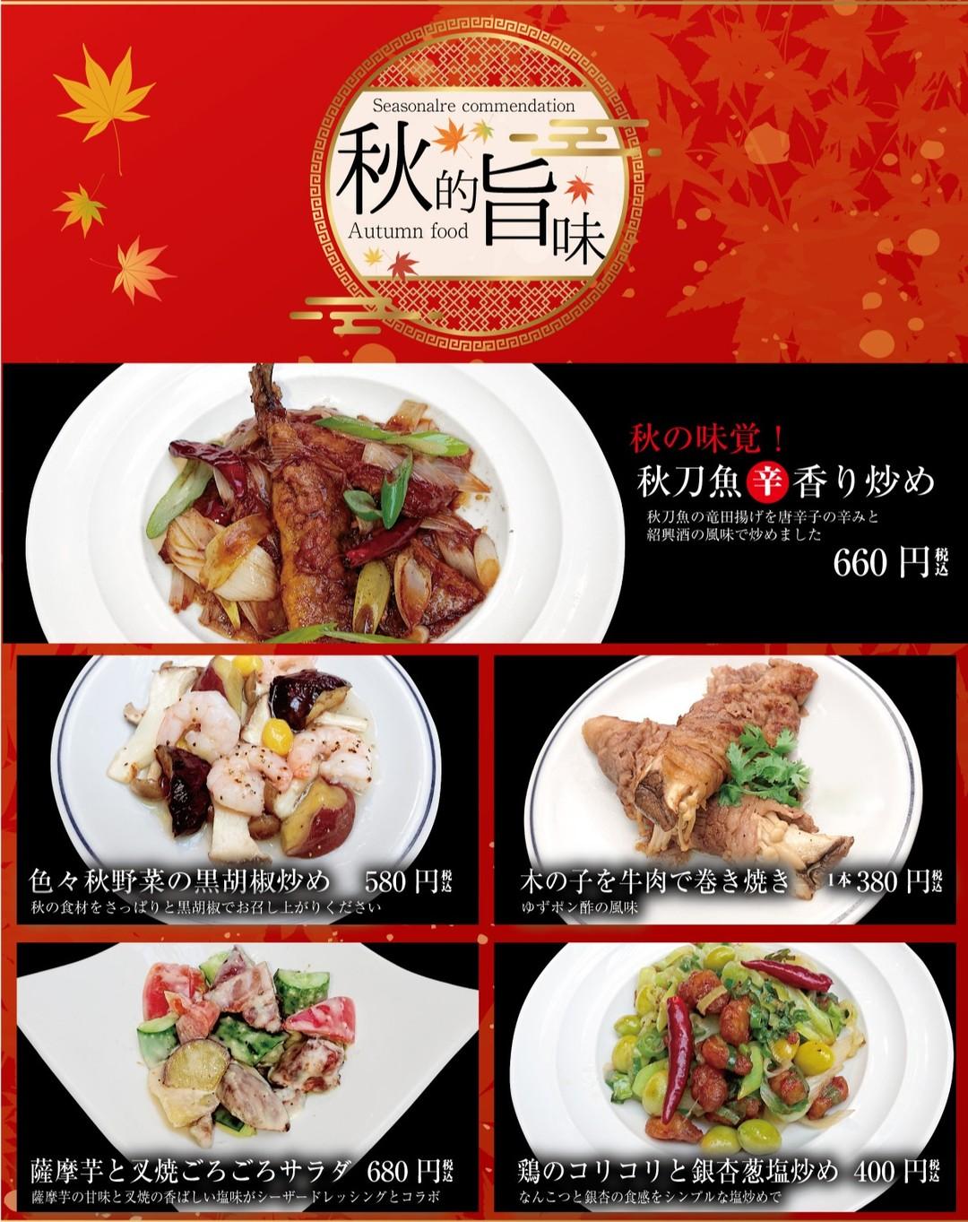 秋の食材を使った季節限定メニュー @大手町/中華/秋/五香路