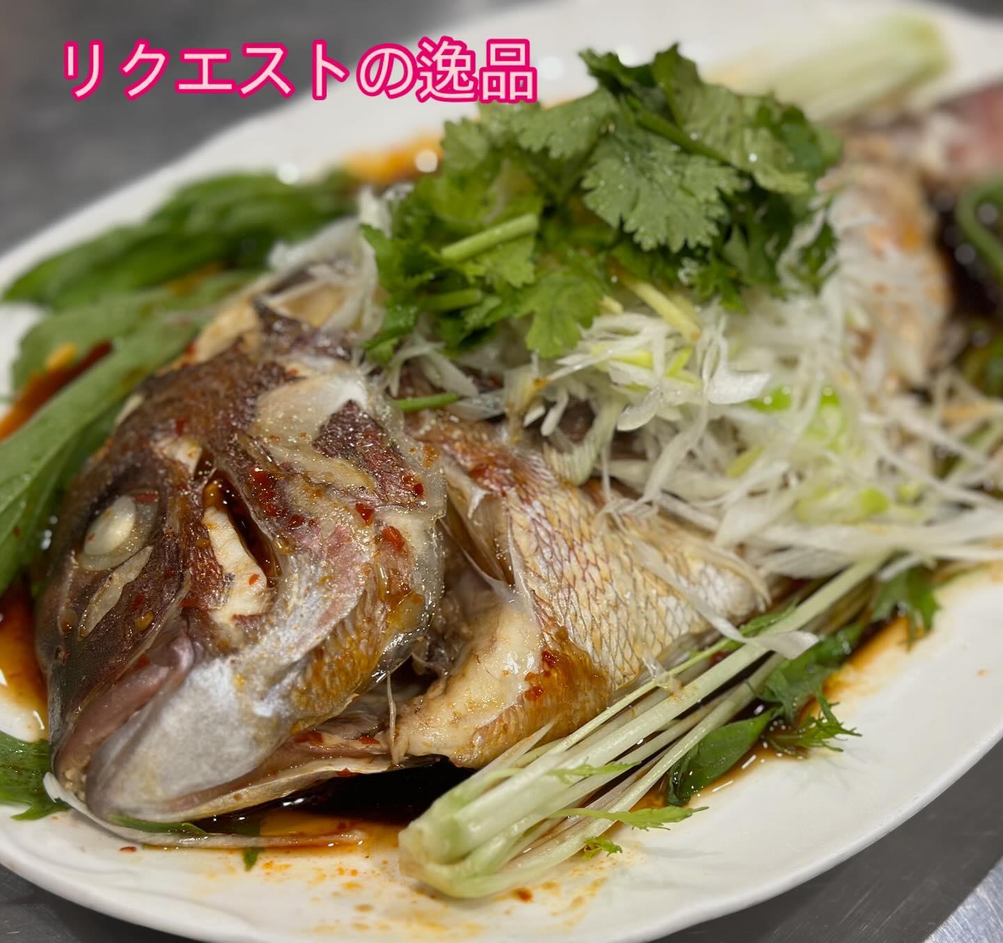 五香路ではご予算に応じてご宴会メニューを🍺 ご提案させて頂きます。 もちろんお料理のリクエストもお任せくださいませ💪 今回のリクエストは 清蒸魚(チンジャンユー) 鯛を丸ごとで迫力あります🐟