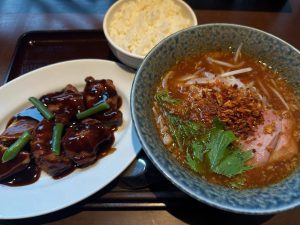 スパイスラーメン&鶏黒酢餡 ご飯又はデザート付き