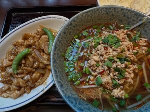 寒い日にピッタリ、辛味ある台湾ラーメンを汗掻きながらお召し上がりください‼️ 鶏肉の牡蠣油炒めはご飯が進みます😊