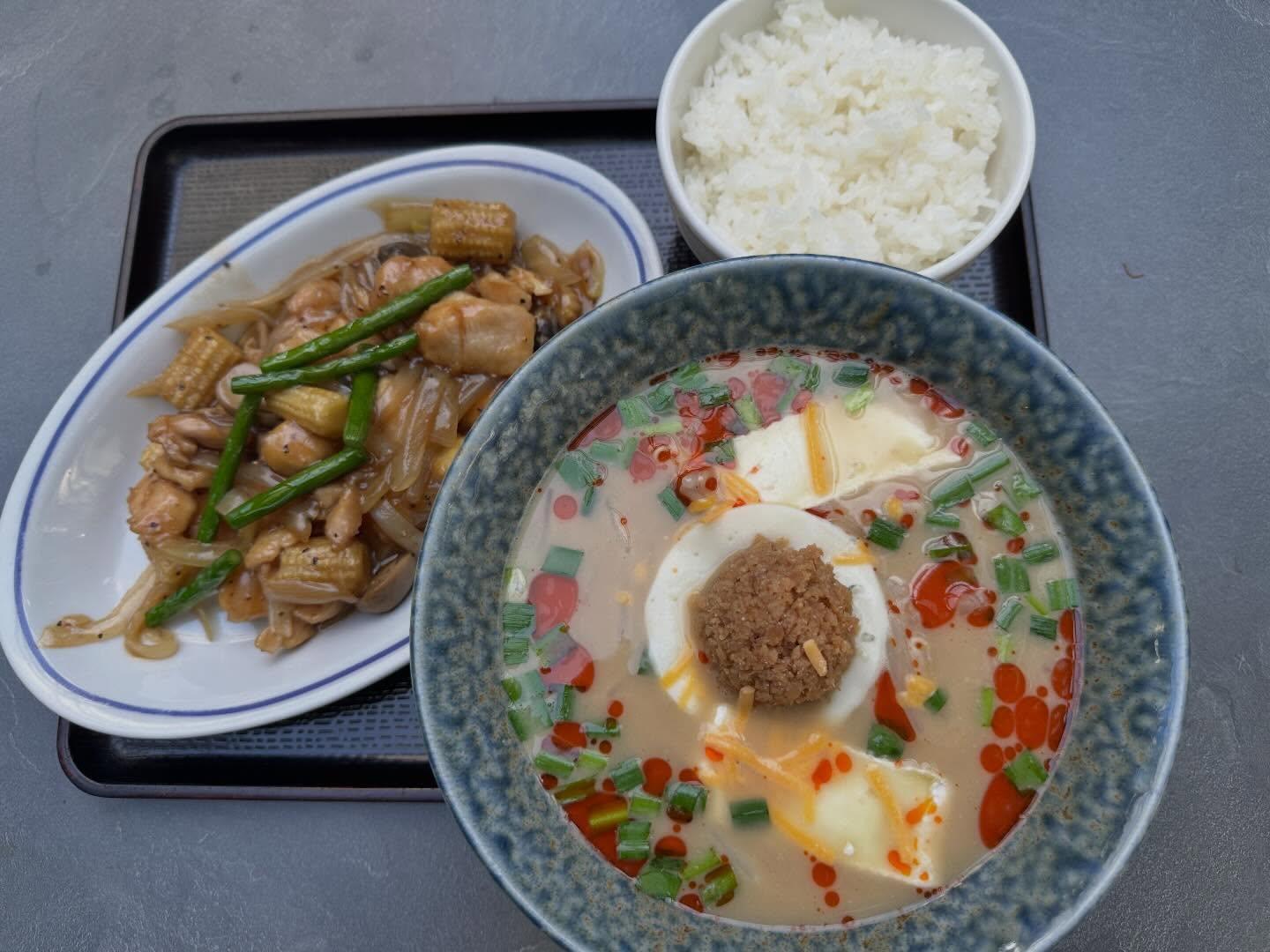 クアトロチーズの担々麺&鶏肉の黒胡椒炒め